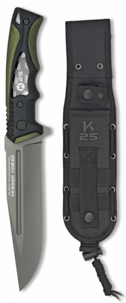 Black Blade 14 cm stainless steel, black handle, Full Tang, total length 25 cm, comes with rigid black belt holder.
