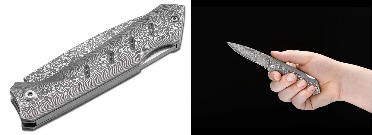 Type:Pocket KnifeTotal Length:18,7Blade Length:8,4Blade Thickness:2,8Weight:150,0 gBlade Material:DamascusHandle Material:DamascusLock:BacklockOpener:Nail NickOpening:ManualColor:Grey