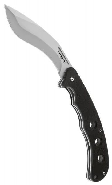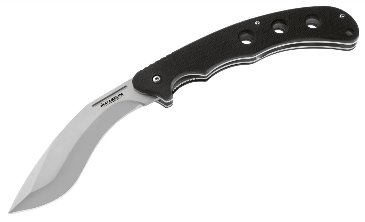 This monstrous knife feels like a pocket sword. Fold out the 440 stainless steel blade and you will feel the power of this impressive folder. Perfect for light chopping or carving, or any other outdoor task. The blade locks securely with the liner lock mechanism, and the handle is crafted of G10 with stainless steel liners. Lanyard hole.