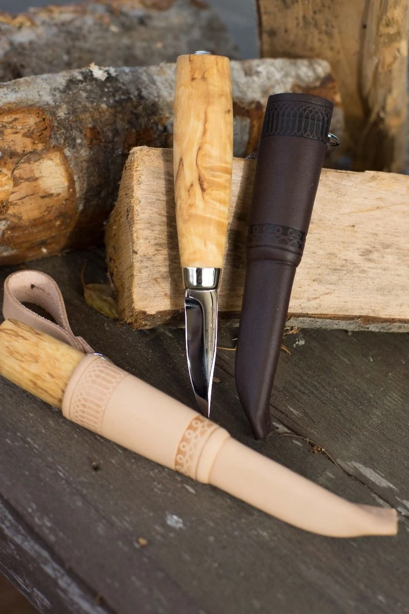 Askarespuukossa on kapea ja terävä hiiliterästerä, joka on suunniteltu suurta tarkkuutta vaativaan veistoon. Terän kärki on hyvin ohut ja se on teroitettu aivan kärkeen saakka. Sen soikea visakoivuinen kahva on hiottu pyöreämuotoiseksi, joten puukkoa on helppo käännellä kädessä. Vaikka terä on lyhyt, kahva on aikuisen käteen sopiva. Kahva on pintakäsitelty pellavaöljyllä jonka ansiosta siitä saa hyvän otteen. Tuppi on vaaleaa kasvisöljyparkittua härän nahkaa ja siinä on jykevä vyölenkki. Tämän puukon parina malli numero 9222 Kaivertelupuukko luo mainion kaksikon kaikenlaiseen tarkkuutta vaativaan veistoon.