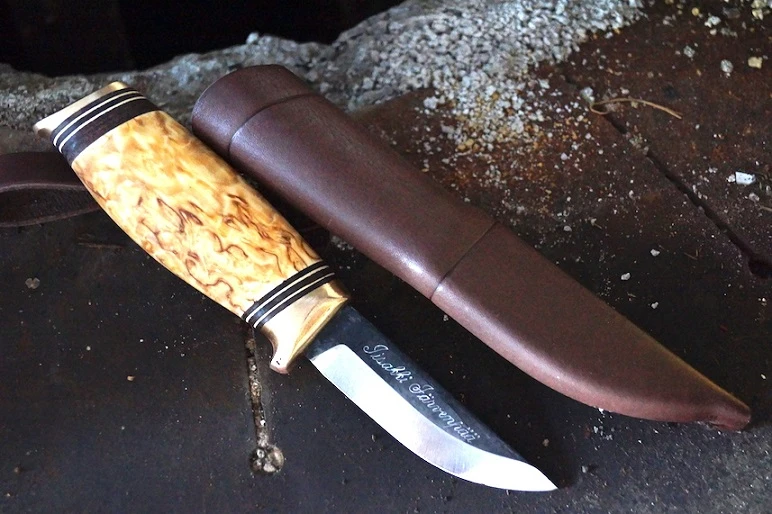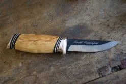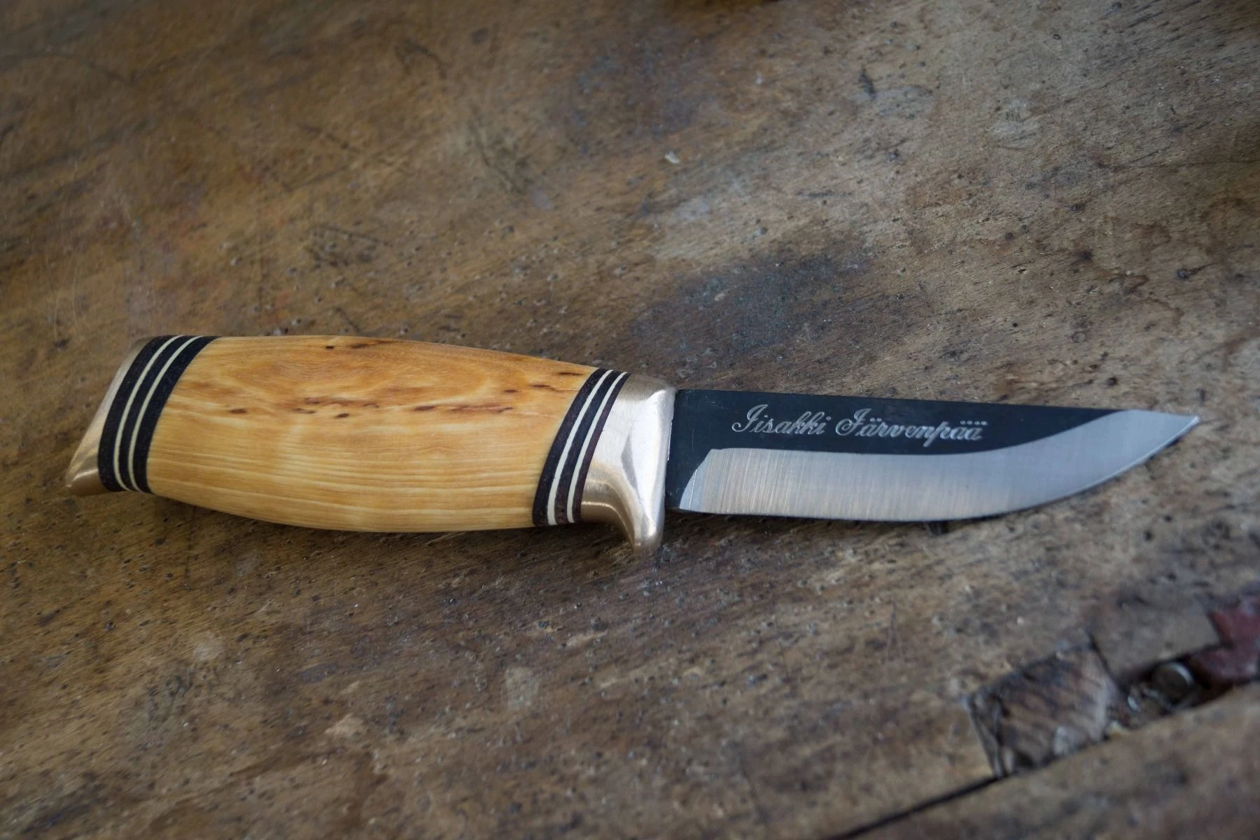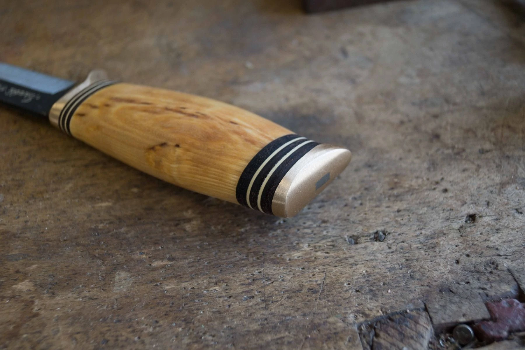 Juhlavuolu on näyttävän näköinen, mutta sen todellisen arvon tuntee kun sen ottaa käteen. Se on paitsi muotoiltu, myös tasapainotettu käteen sopivaksi ja käytettäväksi. Sen erityispiirteenä on viistoon sahattu visakoivuinen kahva, joka täydentyy kummastakin päästä yksittäisvaletulla pronssihelalla.